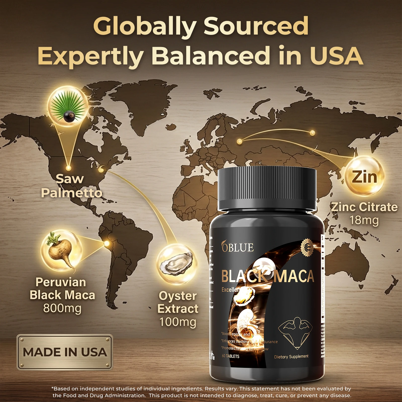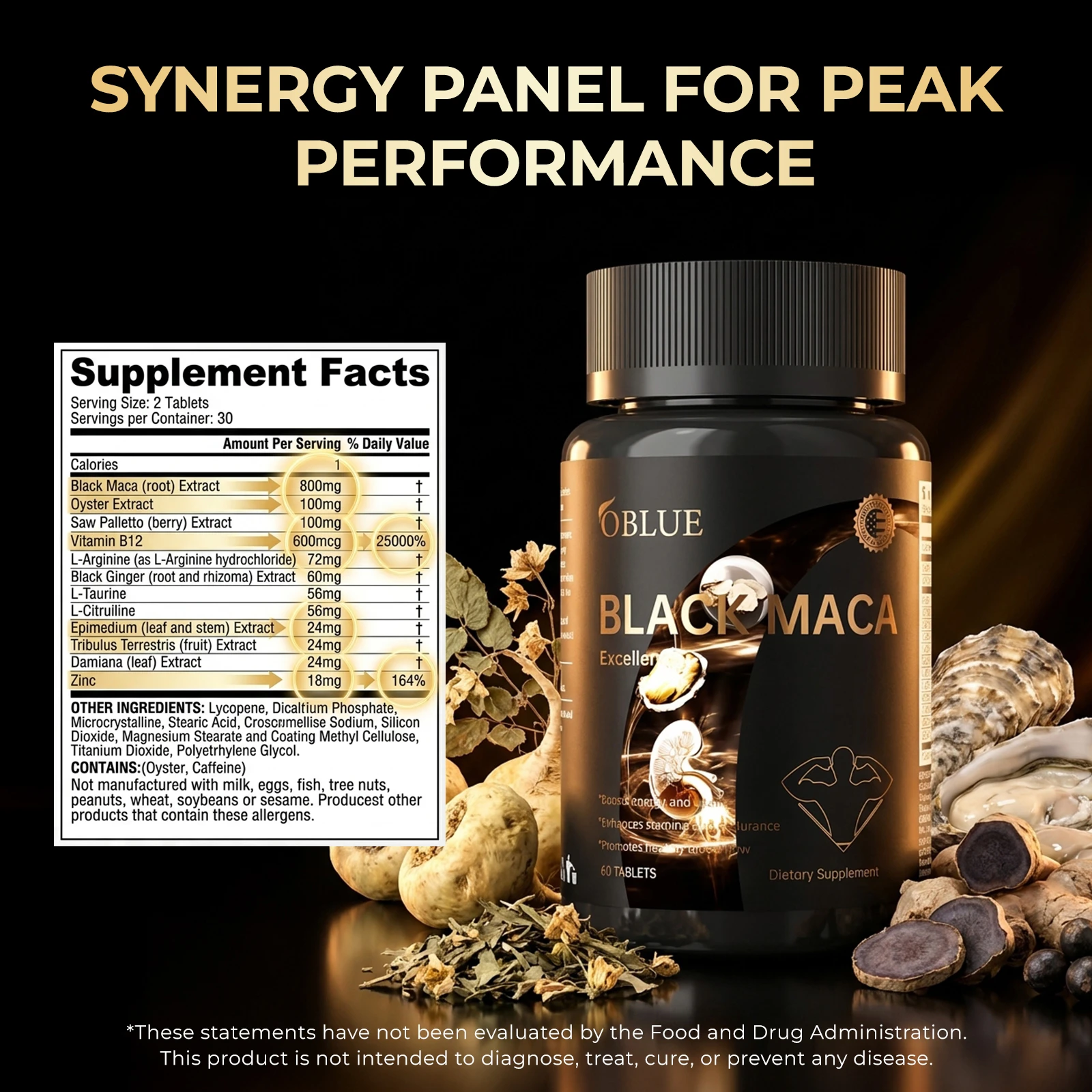 Clinical-Strength Synergists: We didn't stop at Maca. Our performance stack includes Oyster Extract for zinc and amino acids, Saw Palmetto for prostate health, Epimedium (Horny Goat Weed), Tribulus Terrestris, and Damiana to support nitric oxide levels, blood flow, and overall performance.