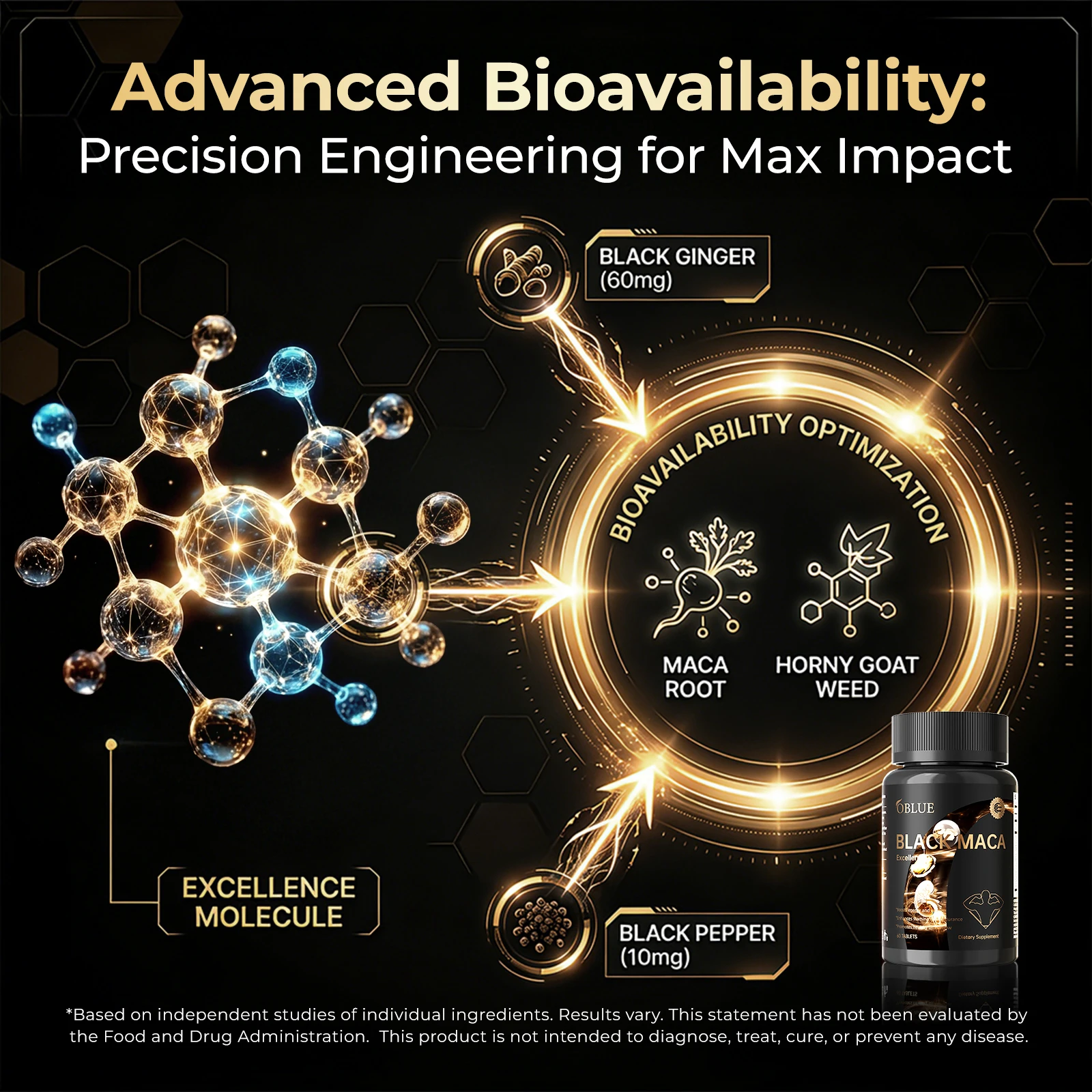 The Power of 800mg Black Maca: Known as Peruvian Ginseng, high-dose Black Maca root provides powerful adaptogenic support for stress reduction, natural energy production, enhanced focus, and a significant boost to libido. This is the foundation of our Excellence formula.